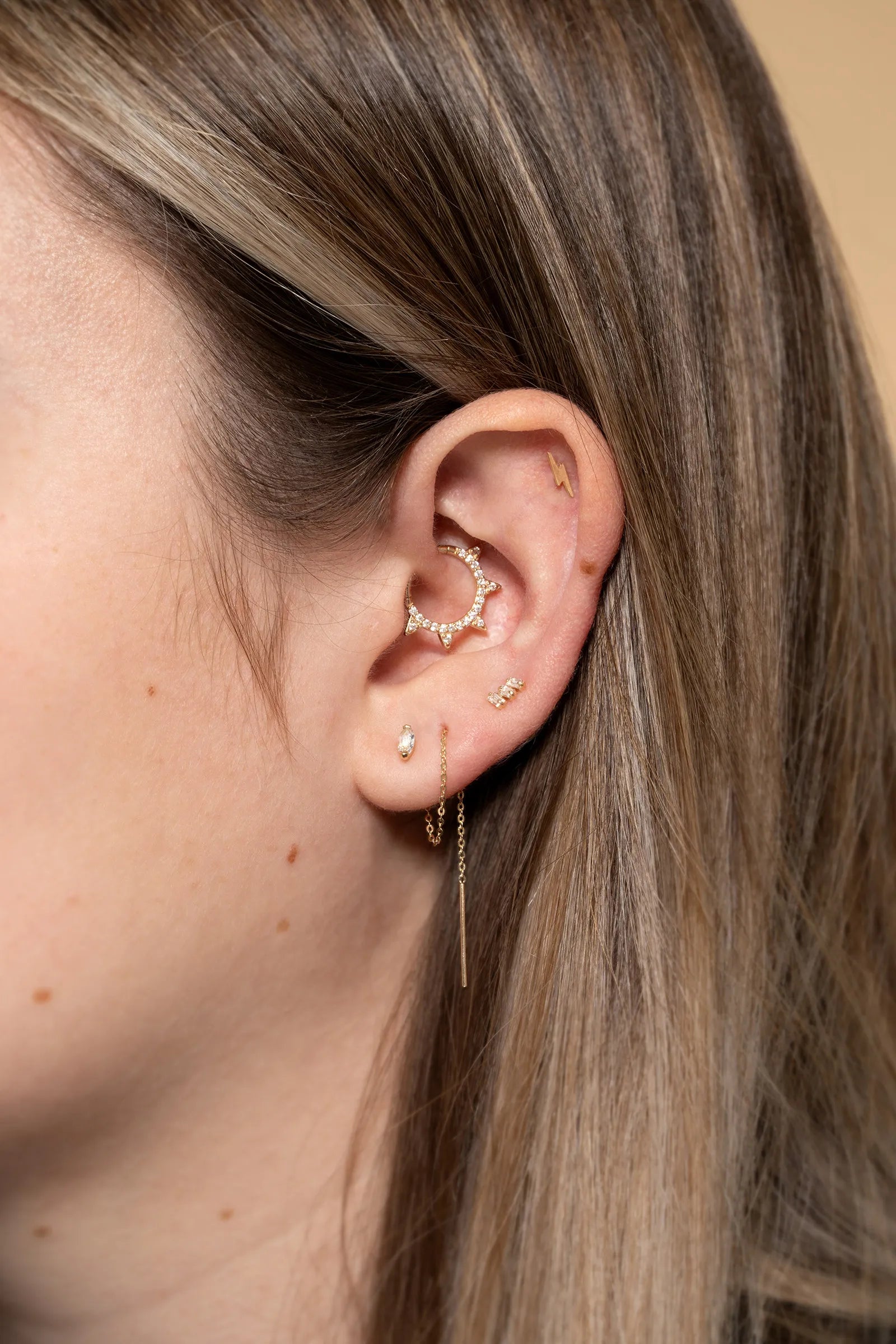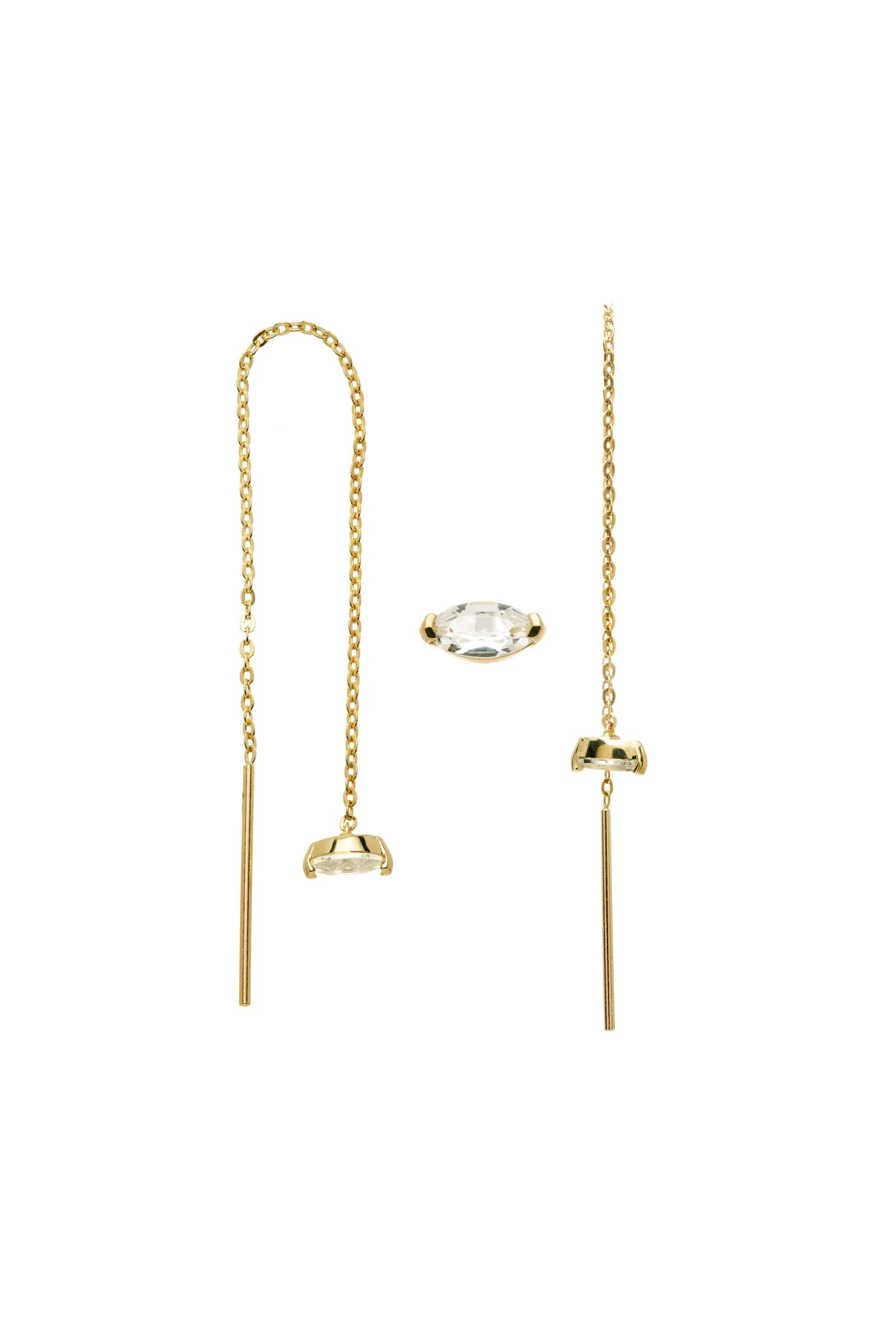Stylish, versatile and full of sparkle. These solid gold threader earrings feature a single marquise-cut white topaz gem suspended on a solid gold chain. These threaders can be styled multiple ways for a look that feels uniquely yours.